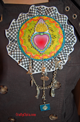 These are new designs I came up within the spirit of large badges that you can wear as a pin or as a necklace. Yah, they are mongo-sized, but so is my love for all things creative. Dainty, I’m not. I suppose you could shrink the idea down to your desired size.