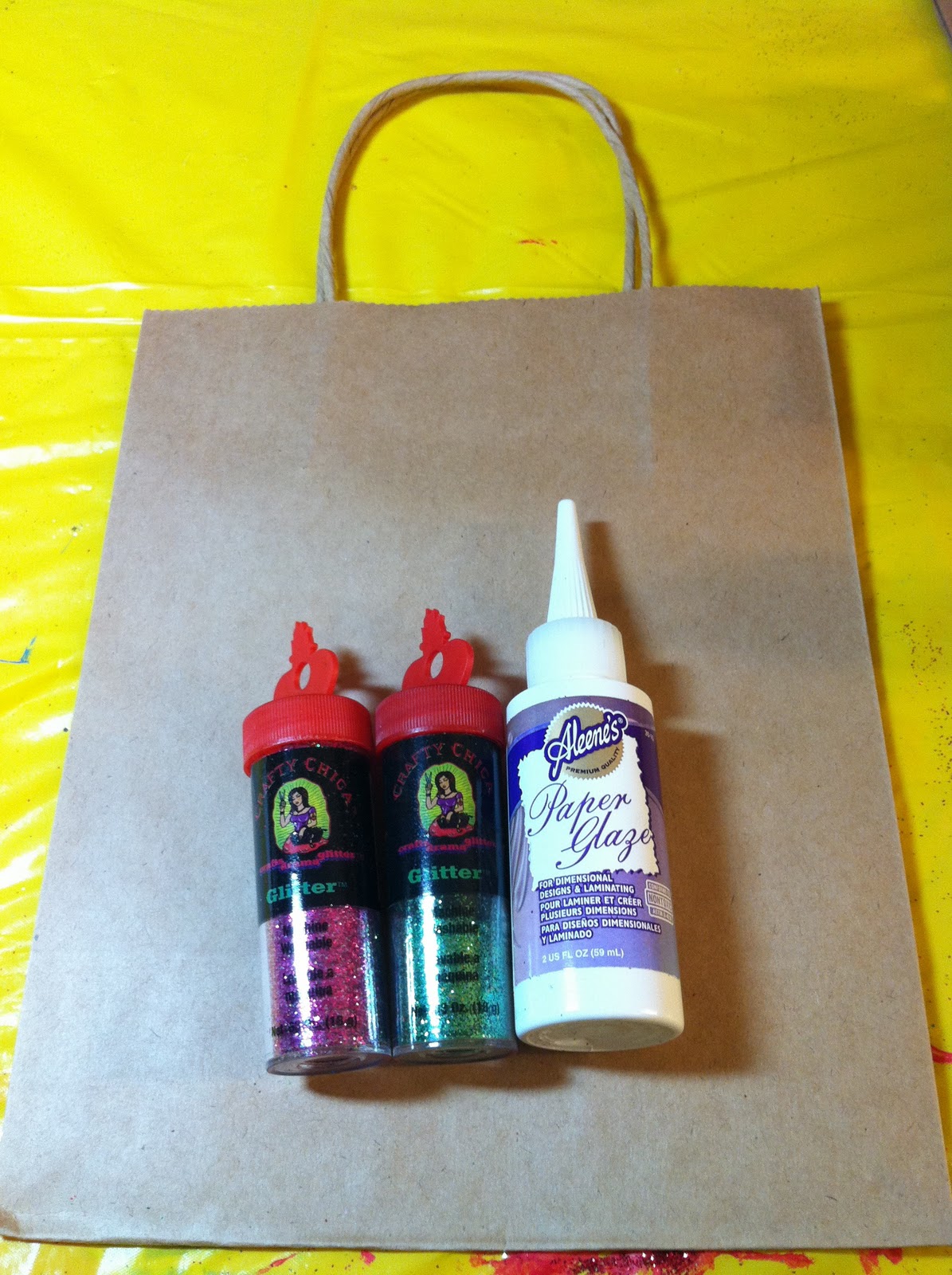 This is all you need! Aleene’s Paper Glaze and Crafty Chica Glitters.