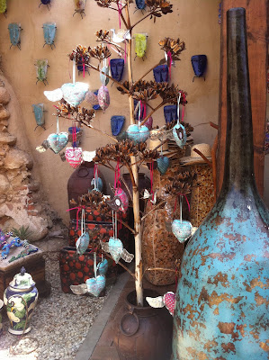 This shop was outdoors and had these fabric hearts trimmed in tin.