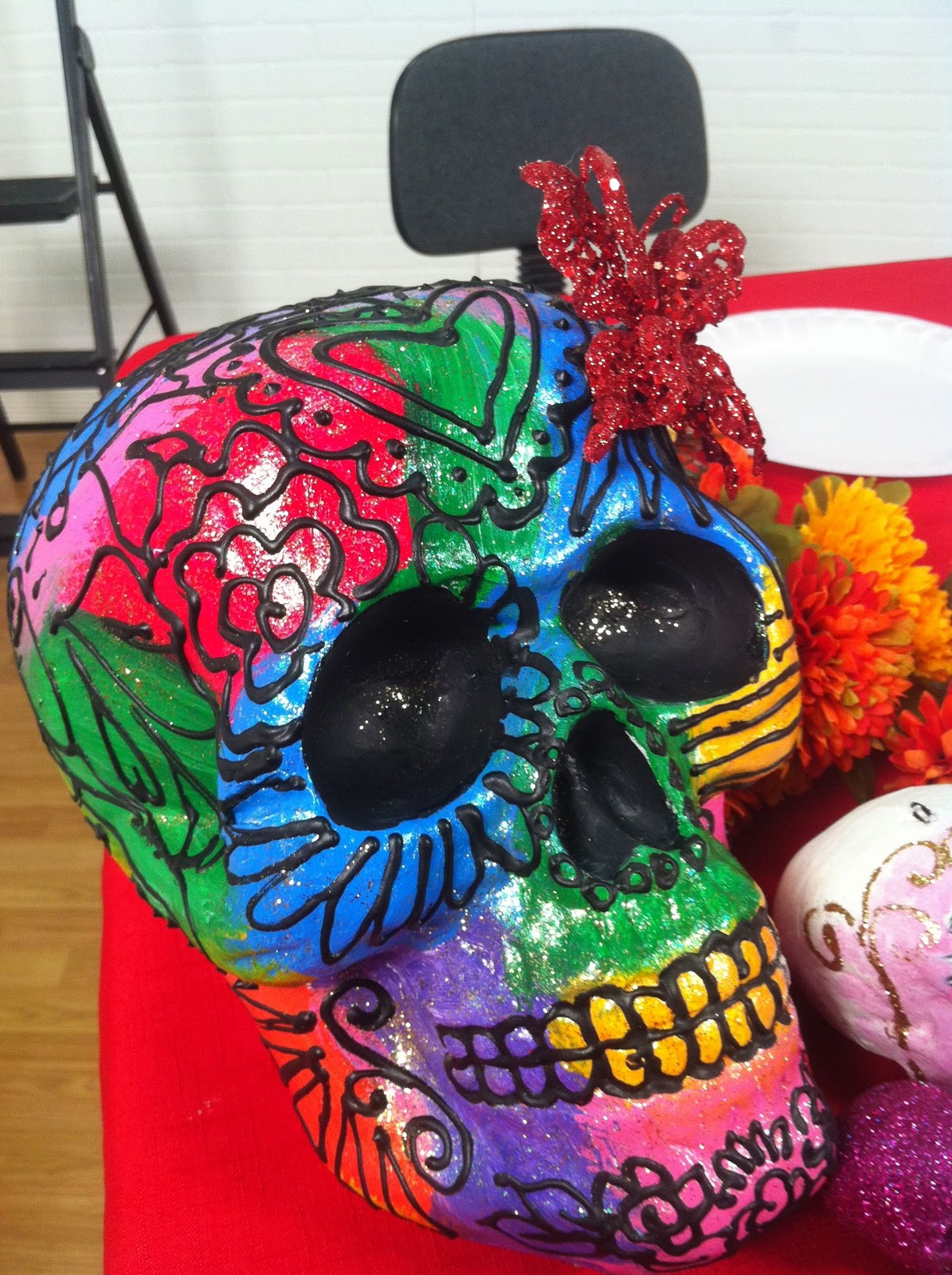 Sometimes I get tired of the traditional white sugar skull. I went with a different look!