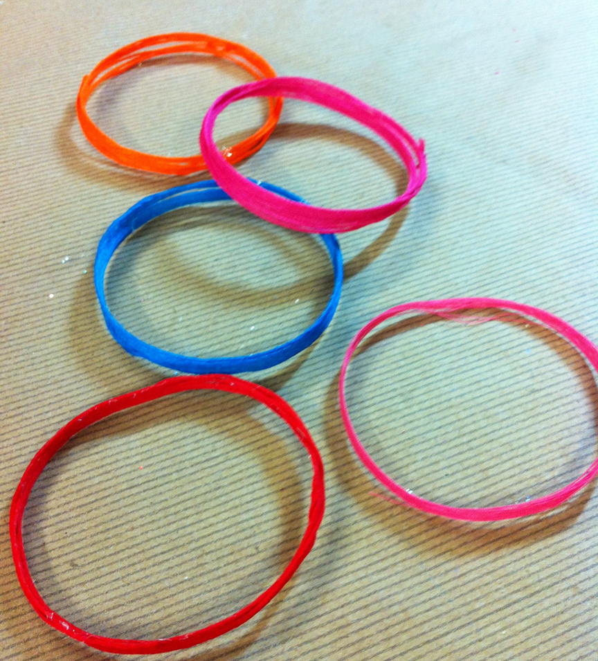 Let it dry for a couple hours (I waited over night). Cut the bottle and carefully remove the newly-stiffened bracelets.