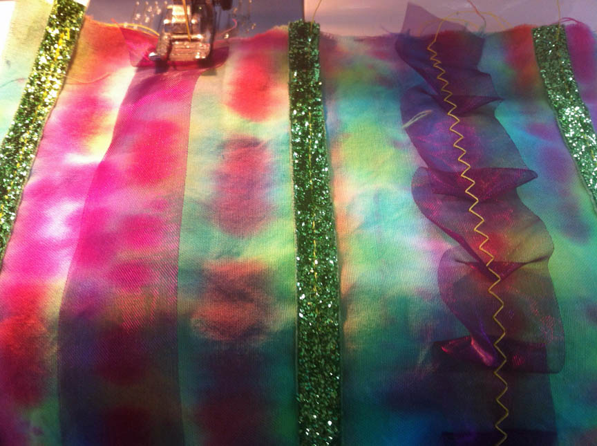I folded the purple ribbon as I sewed to give it a ruffly look.