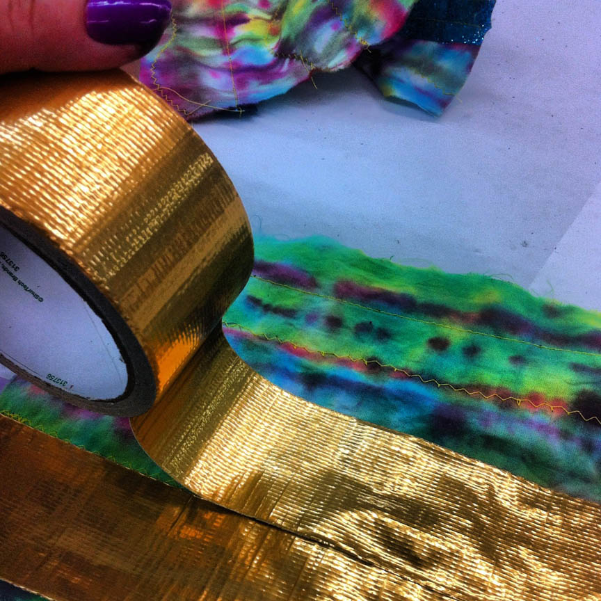 Flip over so the back side is facing up and cover with strips of metallic duct tape or another type you like!