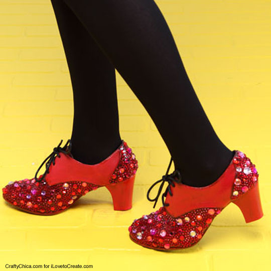I saw Oz The Great and Powerful this weekend and loved it! So much that I had to sit down and watch The Wizard of Oz as soon as I got home. These sparkly shoes are my contemporary take on Dorothy’s ruby slippers. Okay, so they didn’t play a role in the current OZ movie, but they would certainly fit into the attire worn in the Emerald City, don’t you think?