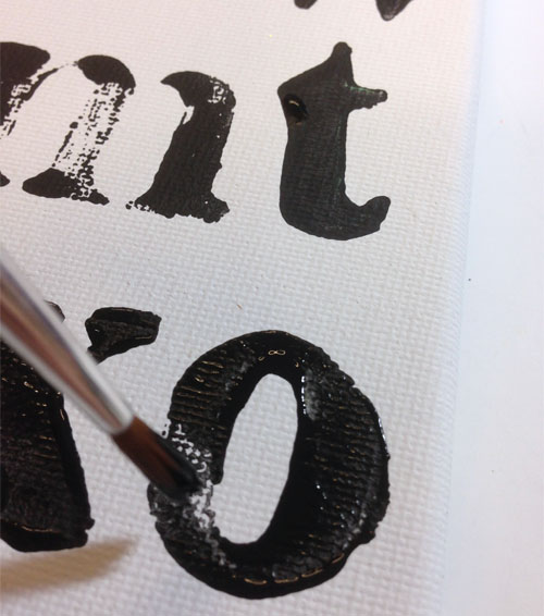 Not all of your letters will have a perfect, opaque stamp. That’s ok, just get through the stamping! When you’re done, use a liner brush and paint to fill in any thin areas so it looks nice and uniform!