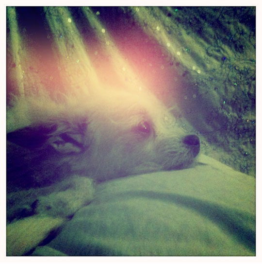 Our little ChaCha passed away unexpectedly on Sunday night. She was nine-years-old, but very sprightly and youthful in spirit. A maltihuahua, she was quite odd looking. She had this crazy, wire-y fur and super long, sleek legs. She walked like she wore go-go boots. She brought us so much joy and happiness for nine wonderful years.