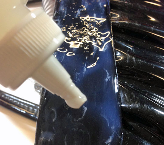 Before you glue the spikes, you want to lay out your design to make sure you have enough spikes. To complete this look, I used exactly 200 spikes. Once you have your idea set, add a layer of the adhesive on evenly, work on one area at a time so the glue doesn’t dry up.