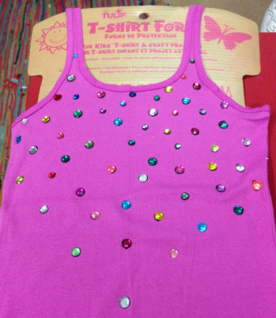 You’ll need one tank, acrylic gems, a Tulip T-Shirt Form, and Tulip Slick 3D Fashion Paint.