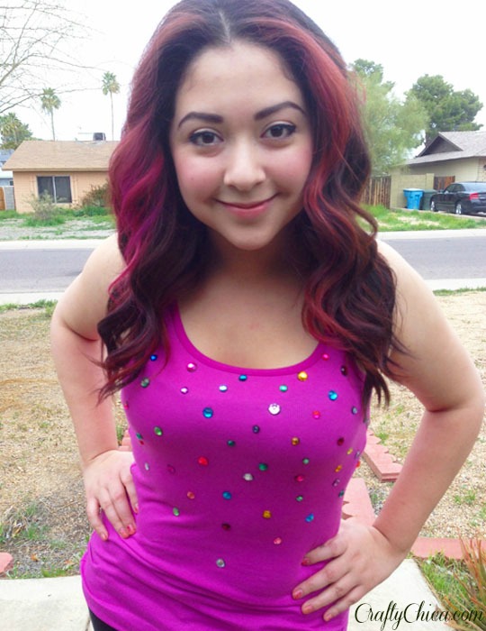 Tank tops in Arizona are as plentiful as mittens at the North Pole. You gotta have them. But leaving them plain and unembellished should be a crime! This is an easy-peasy method – 3D Slick Paint and a handful of gems!