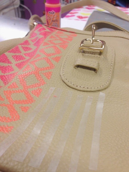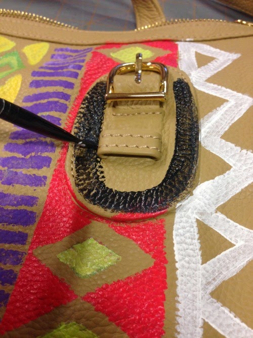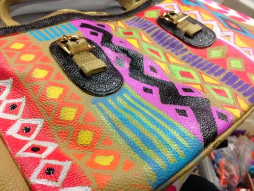 You are totally going to think I’m cray-cray bananas, drizzled with loca sauce when I tell you about this awesome bag. The folks at Onna Ehrlich wrote to me to see if I would feature their beautiful Derin bag ($650.00). I love their bags, they are gorgeous and super stylish. They were kind and generous enough to send me one of the Derin bags to have and keep! I received the bag and loved it! But I thought I’d give it a little DIY love, maybe just a few light barely-there stenciled Aztec designs. Next thing I knew, I went to town on the entire bag! I painted a $650 designer bag! Eeeek! I hope they are not mad at me!
