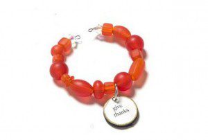 Glue affirmation on wood pieces and attach to beaded napkin rings.